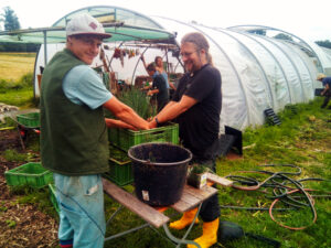 Unser Team besteht momentan aus vier festen Kollektivist:innen sowie Auszubildenden (freie Solawi- Ausbildung) und Praktikant:innen. Ein harmonisches, vertrauensvolles Miteinander im Team ist uns wichtig. Manchmal unterstützen uns Mitglieder der Solidarischen Landwirtschaft bei der Arbeit.