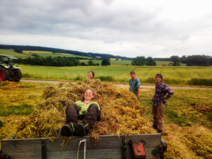 Zur Düngung verwenden wir im Sinne des Kreislaufgedankens Rinder- und Hühnermist aus dem eigenen Betrieb sowie Ackerbohnenschrot aus eigenem Anbau.